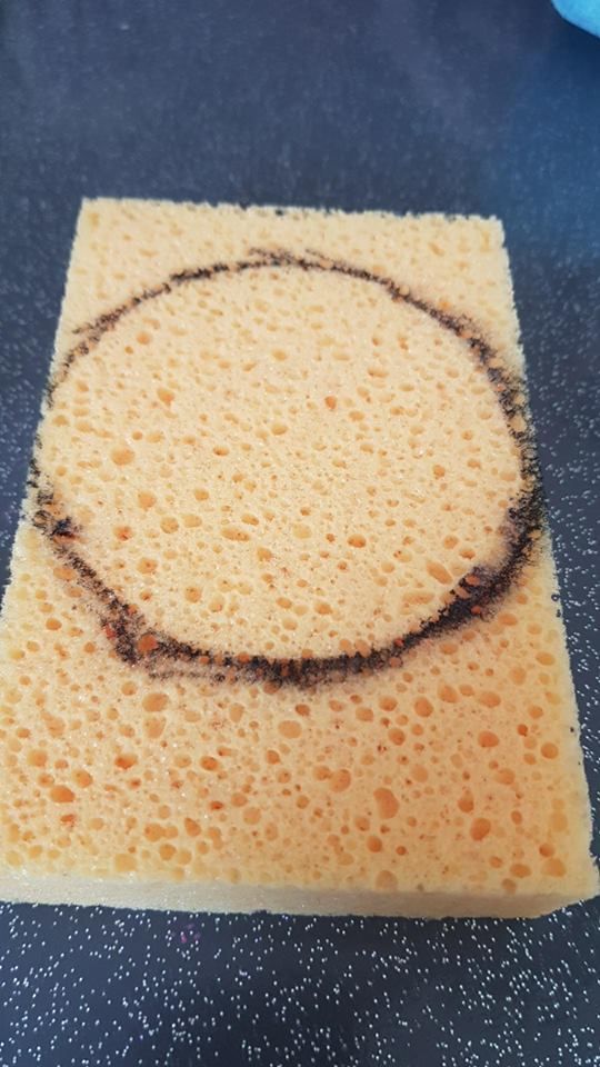 1-Faire un cercle sur l’éponge à l'aide d'un verre relativement large style whisky. Ou encore le couvercle d'un pot de Nutella , whaouuu c'est incroyable j'arrive à mettre le mot Nutella dans la moitié de mes articles, pas bien !!!! Mes fesses t'aiment pas Nutella .